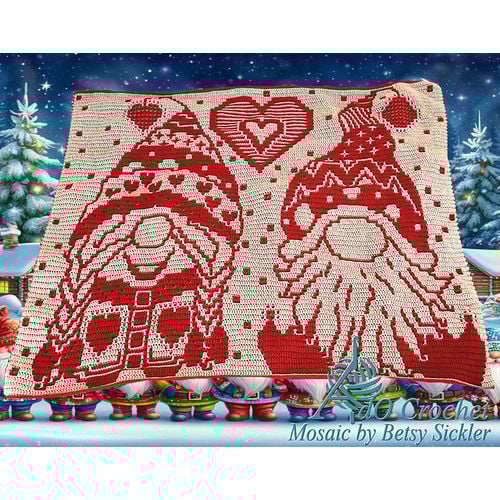 Dit Christmas Gnomes Rood mozaïek garenpakket is exclusief patroon.