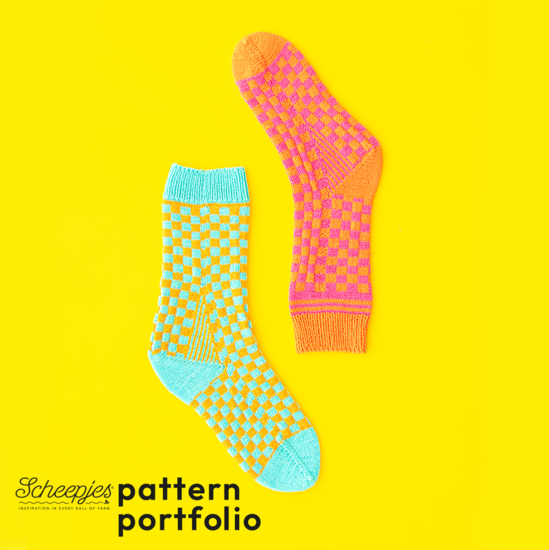 Met hun vrolijke dambordpatroon en eenvoudige herhaling bewijzen de Coral Sunset Socks dat fair isle helemaal niet ingewikkeld hoeft te zijn. Ze zijn een van de elf ontwerpen in Scheepjes Pattern Portfolio Volume 05: Knit Socks with Arcadia. Het boekje bevat volledige instructies voor het breien van sokken vanaf de teen of vanaf de boord, zodat je de methode kunt kiezen die jij het prettigst vindt. Voor elk ontwerp zijn kleurwerkdiagrammen opgenomen. Ben je nieuw in sokken breien, dan vind je volop handige tips en QR-codes die leiden naar videotutorials voor extra ondersteuning.