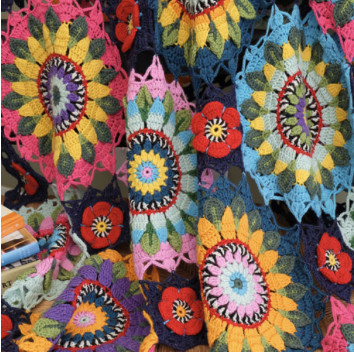 Deze prachtige versie van de Fields of gold Blanket is ontworpen door Jane Crowfoot, bekend van de populaire Persian Tiles Deken en zo nog vele andere. De Fields of gold Blanket heeft ze ontworpen omdat ze geïnspireerd werd door de mooie zonnebloem velden in Frankrijk, is het resultaat niet schitterend geworden?
