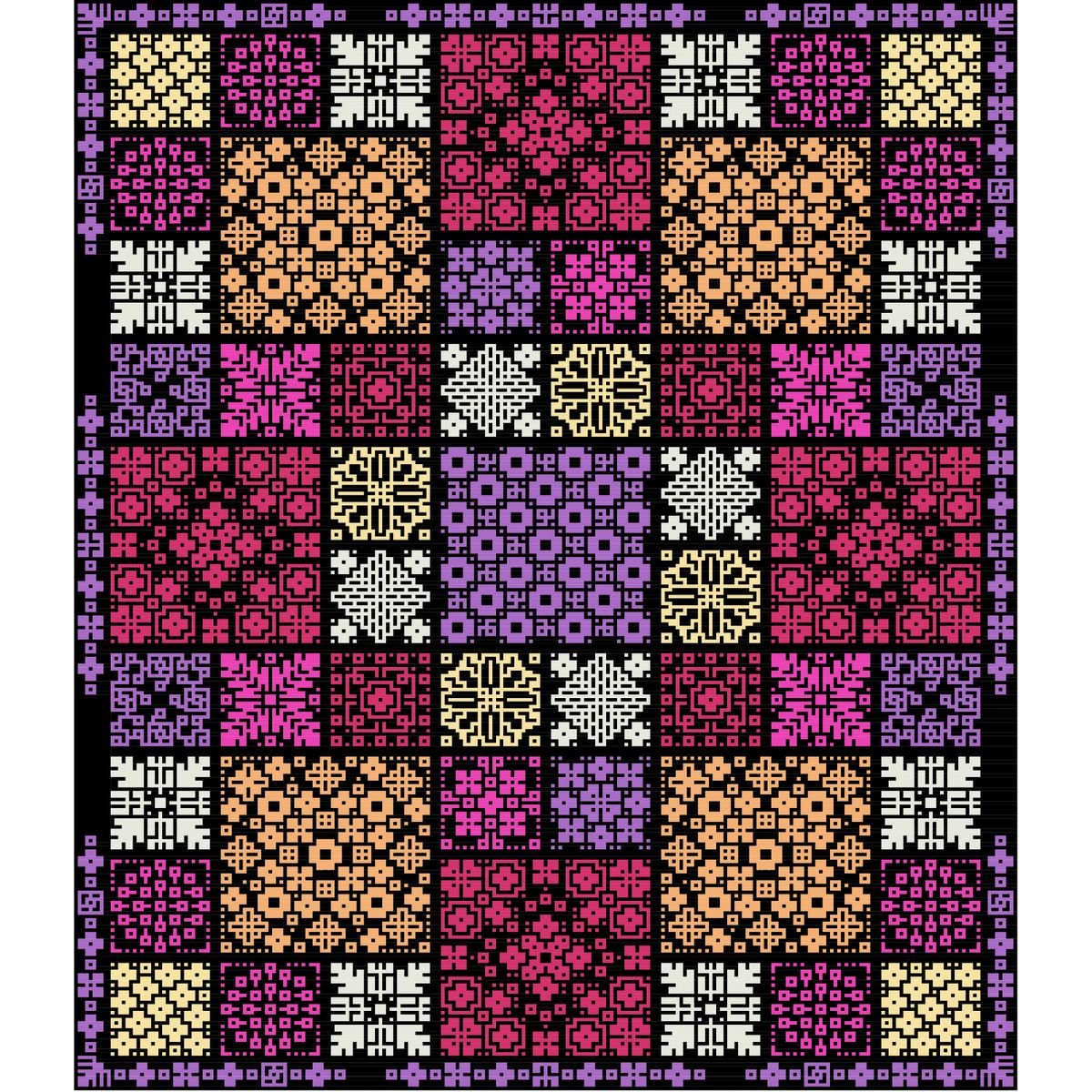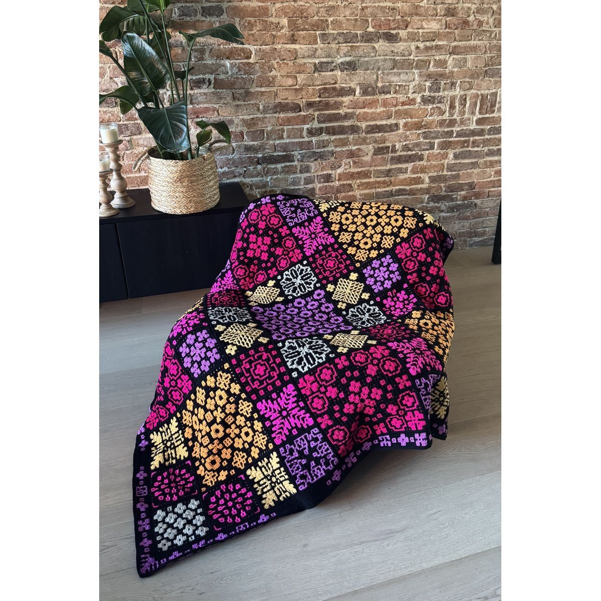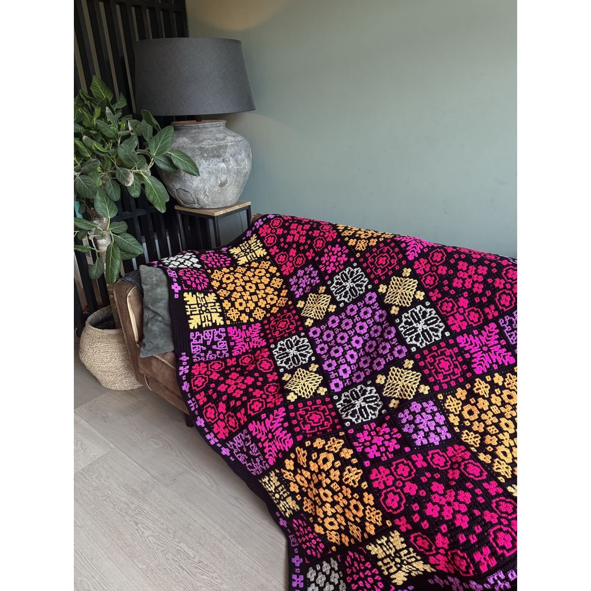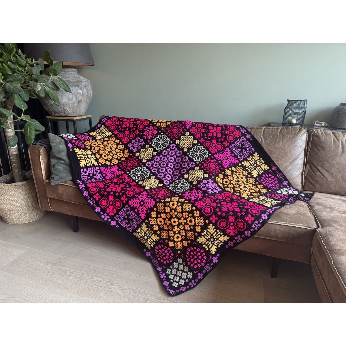 De deken wordt gehaakt in de overlay mozaïek techniek – een mooie, rustige en gelijkmatige haaksteek die het patroon prachtig laat uitkomen.