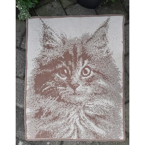 Dit Fluffball Blanket garenpakket Mocha is om een super schattige pluizige kitten te haken in overlay mozaïek techniek.