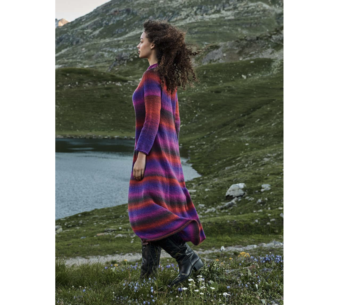 Deze Jurk Versione maat 36-50 Gomitolo 16-02 is gemaakt van het mooie garen Lana Grossa Gomitolo Versione, gemaakt van 50% scheerwol en 50% polyacryl.