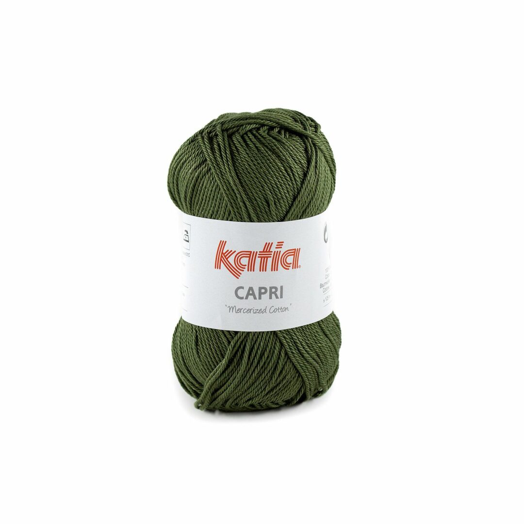 De Katia Capri 82175 Olijfgroen is een luchtge glanskatoen geschikt voor naald 2,5 – 3,5mm