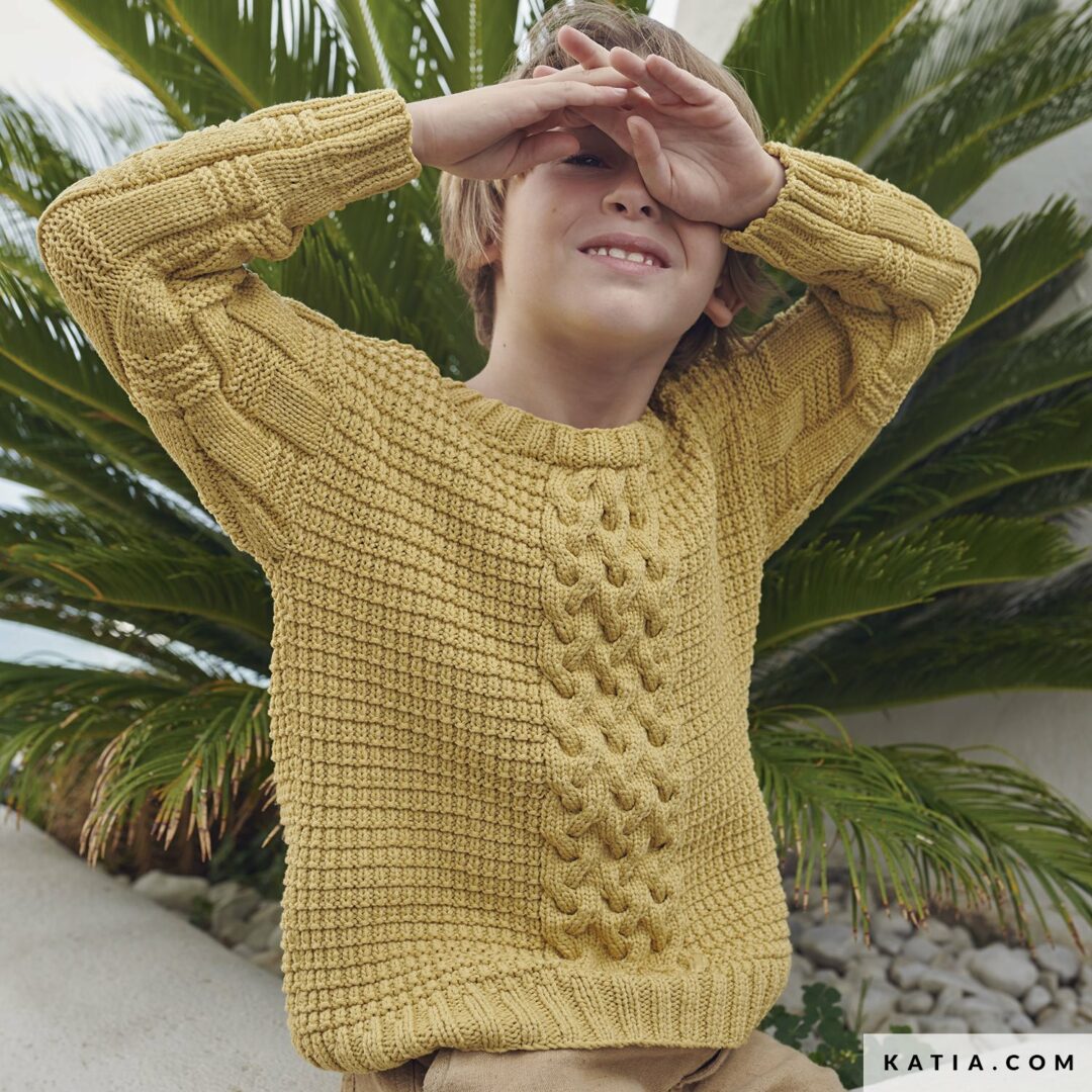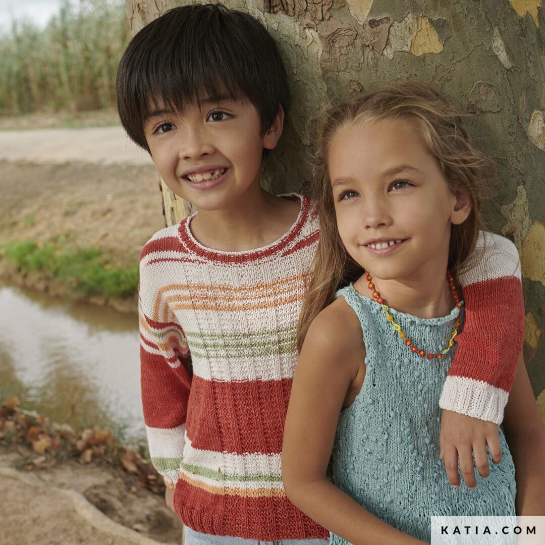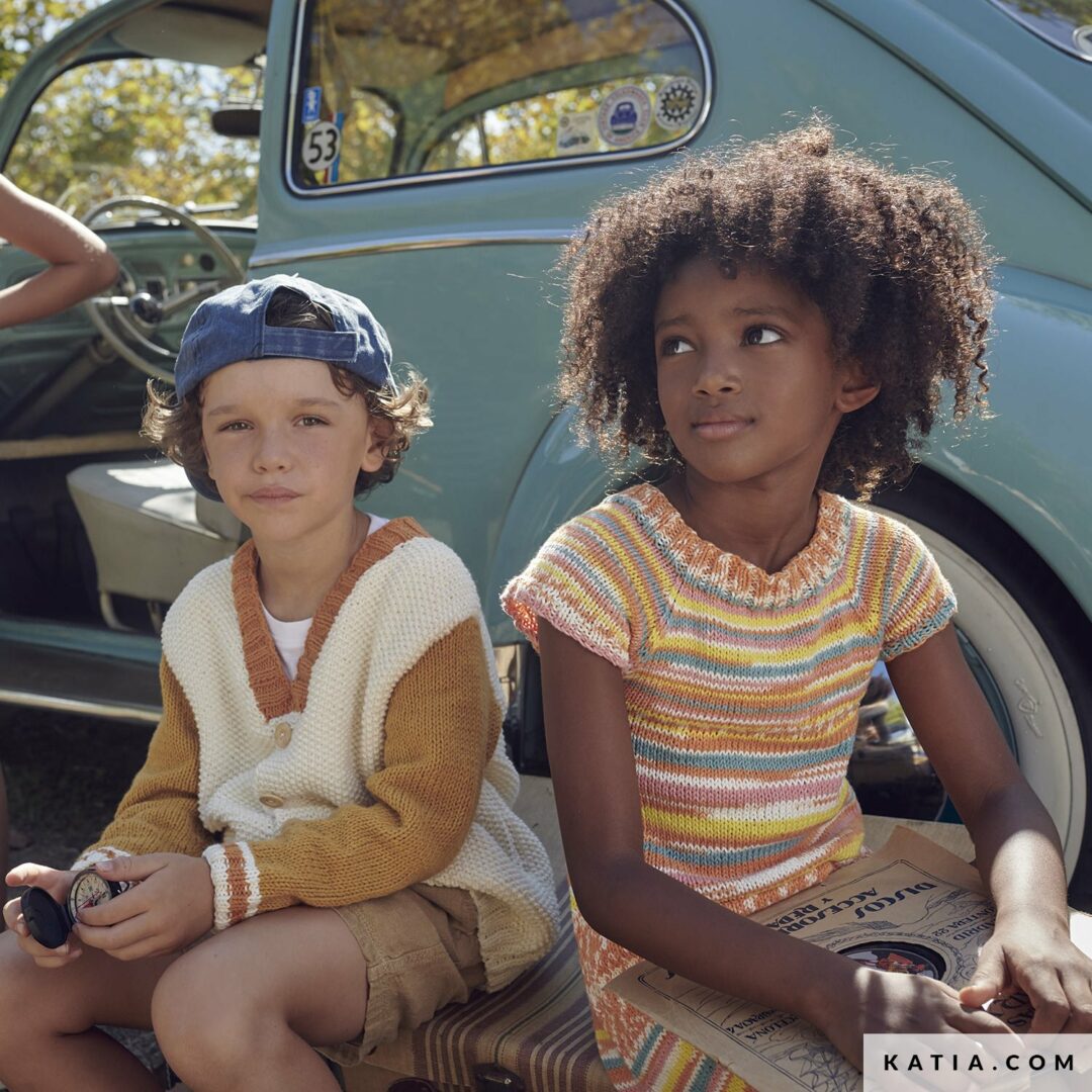 In het tijdschrift Katia Kinderen 101 zijn 31 verschillende modellen beschikbaar voor jou, om de leukste 100% handmade kleding voor de kleintjes te maken. De meeste modellen zijn breipatronen, maar ook een interessant haakpatroon staat in dit tijdschrift. Wij bieden een grote en uiteenlopend assortiment aan voor alledaagse kleding voor jongens en meisjes van 2 tot 12 jaar. Brei jurken, zomerse topjes, korte broeken, t-shirts, jasjes en truien met de meest comfortabele, zachte en kleurrijke Katia garens. Dit lente-zomerseizoen spelen we in op een reeks leuke en kinderlijke kleuren: lilas met pistache tonen, van groen tot mosterd, roze met turkoois, blauw en oranje. Beleef deze feestdagen veel plezier met het breien van kinderkleding met strepen, ruiten, eenvoudig ajourwerk, klassieke kabels, reliëfsteken, granny squares… alles om de kleintjes in de familie te verrassen.