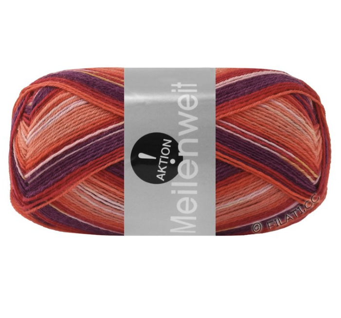 Deze Lana Grossa Meilenweit Aktion 3016 is gemaakt van 75 % Scheerwol en 25 % Polyamide, geschikt voor naald 2,5mm
