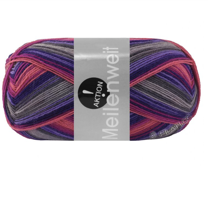 Deze Lana Grossa Meilenweit Aktion 3024 is gemaakt van 75 % Scheerwol en 25 % Polyamide, geschikt voor naald 2,5mm