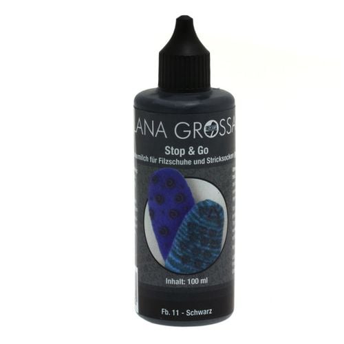 Deze Lana Grossa Stop en Go Latex zwart is erg handig om je eigen slipvrije pantoffelsokken mee te maken.