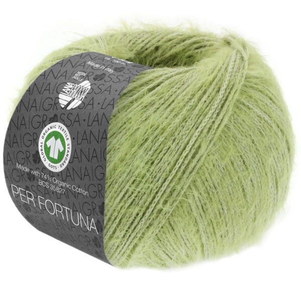 Ontdek de pracht van deze Lana Grossa Per Fortuna 43 Limegroen, een garen dat doordrenkt is met kwaliteit en verfijning. Met zijn unieke samenstelling van 74 % Katoen en 26 % Gerecycled polyamide brengt Per Fortuna een nieuwe dimensie van luxe naar je brei- en haakprojecten.