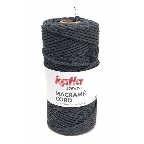 Deze Katia Macrame Cord bestaat uit katoen, polyester en overige vezels. Het garen is 5 mm dik. Het kleurenpalet bevat ondertussen al bijna 20 kleuren.