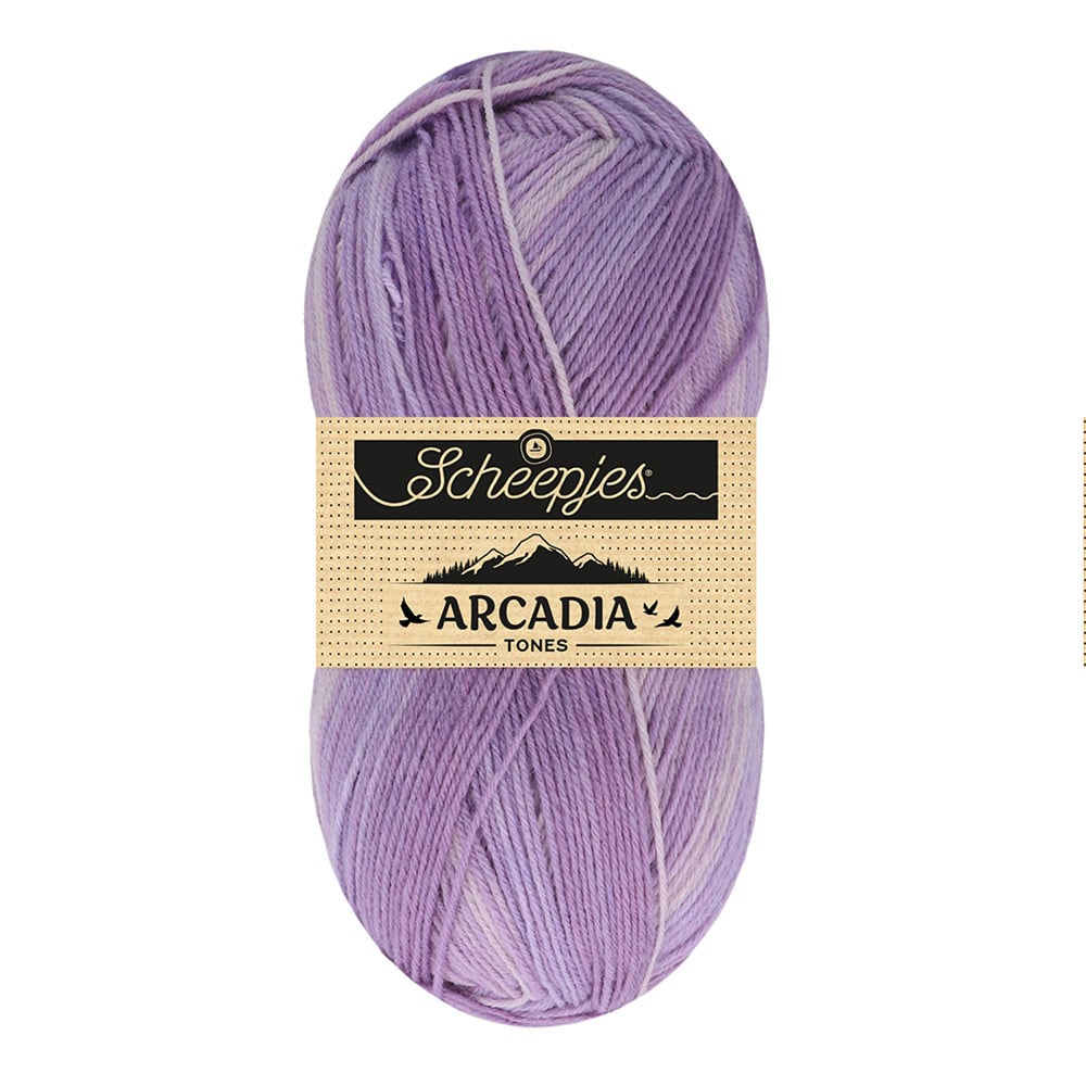 De dynamische collectie van Scheepjes Arcadia is steeds in ontwikkeling en wordt regelmatig uitgebreid met nieuwe kleuren volgens de nieuwste trends. Scheepjes Arcadia heeft verschillende series: Solid, Tones, Striped en nu ook Jacquard! Solid bestaat uit unikleuren, Tones heeft een subtiel kleurverloop van verschillende tinten in dezelfde kleur, Striped is zelfstrepend en Jacquard vormt uit zichzelf een prachtig kleurenpatroon tijdens het breien. Met al deze varianten heb je tal van mogelijkheden in het samenstellen van je zelfgebreide lievelingssokken. Brei bijvoorbeeld een zelfstrepende sok met een effen hiel en tenen. Arcadia is natuurlijk ook geschikt voor allerlei andere kledingstukken en accessoires, zoals truien en sjaals. Scheepjes Arcadia heeft de ademende kwaliteit van wol, maar is dankzij de polyamide slijtvast en onderhoudsvriendelijk. Arcadia heeft een geweldige stekendefinitie, voelt licht rustiek aan en wordt tijdens het verwerken zachter.