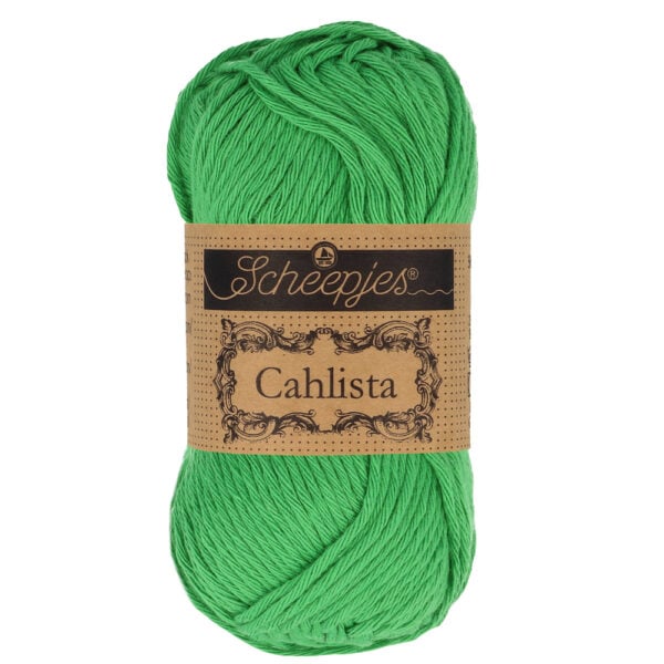De Scheepjes Cahlista 515 Emerald is een bijzonder mooi katoengaren, want dat is wat Cahlista betekent. Dit geldt zeker voor dit garen met zijn matte uitstraling! Dit 100% katoenen, niet-gemerceriseerde garen heeft de perfecte twijning, zodat het garen niet splijt en toch zeer soepel valt. Dit garen is double gassed, wat betekent dat eventuele overtollige katoenvezels van het garen worden verwijderd middels een proces waarbij het garen tot twee keer toe door een vlam wordt geleid en daardoor perfect wordt afgewerkt. Het garen glijdt gewoonweg over de haaknaald of breinaalden! Het is verkrijgbaar in 109 kleuren met herkenbare kleurnummers, zodat het geschikt is voor projecten met verschillende garendiktes, zo is het bijvoorbeeld te combineren met Scheepjes Catona of Sugar Rush.